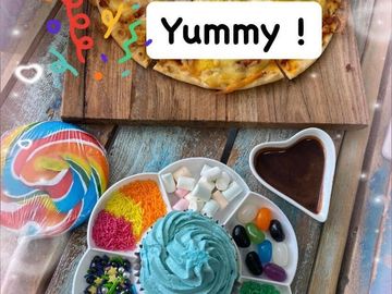 Our Kids pARTy birthday parties include include Pizza, Popcorn and Spider Drinks plus your choice of fruit wands, fairy bread, DIY cupcake decorating, ice cream sundaes or donut and waffle platter.
